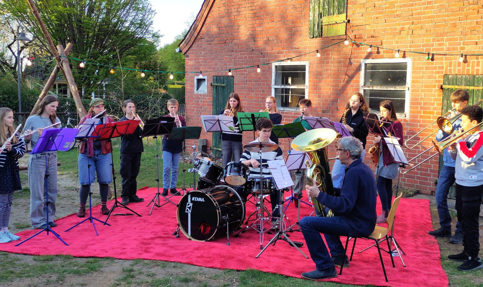 Nur einen Steinwurf entfernt, auf dem Sassenhof, ging es ab 19 Uhr musikalisch weiter: Das Jugendorchester der Musikschule Winsen unter der Leitung von Uwe Granitza eröffnete den Abend mit einem mitreißenden Auftritt.